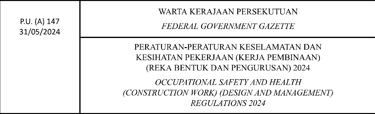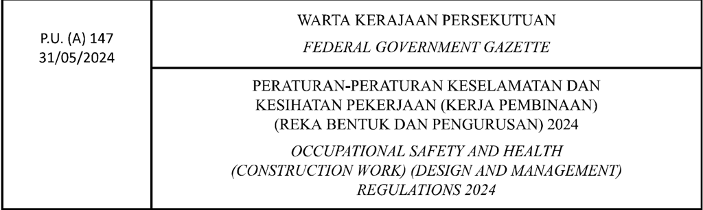 “P.U. (A) 147/2024, effective 1 June 2024, introduces OSHA’s comprehensive requirements for managing safety and health risks during the design and construction phases.”